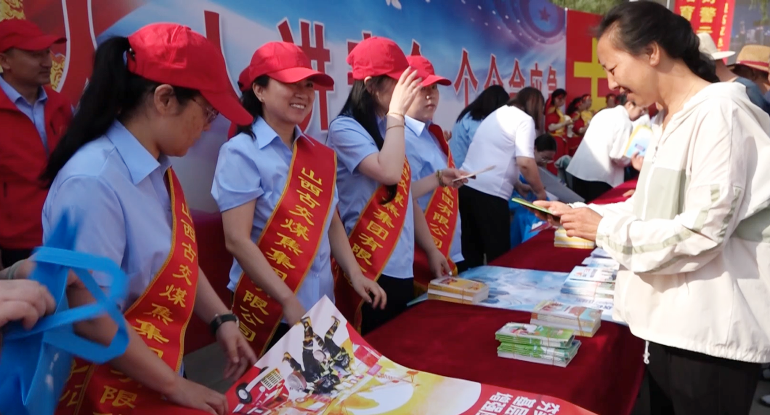 山西古交煤焦集團工作人員散發(fā)宣傳資料,宣講安全生產(chǎn)方針政策、法律法規(guī)。